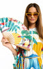 Wild Tropical Print Hand Fan | Blue. Available at Pasha Living